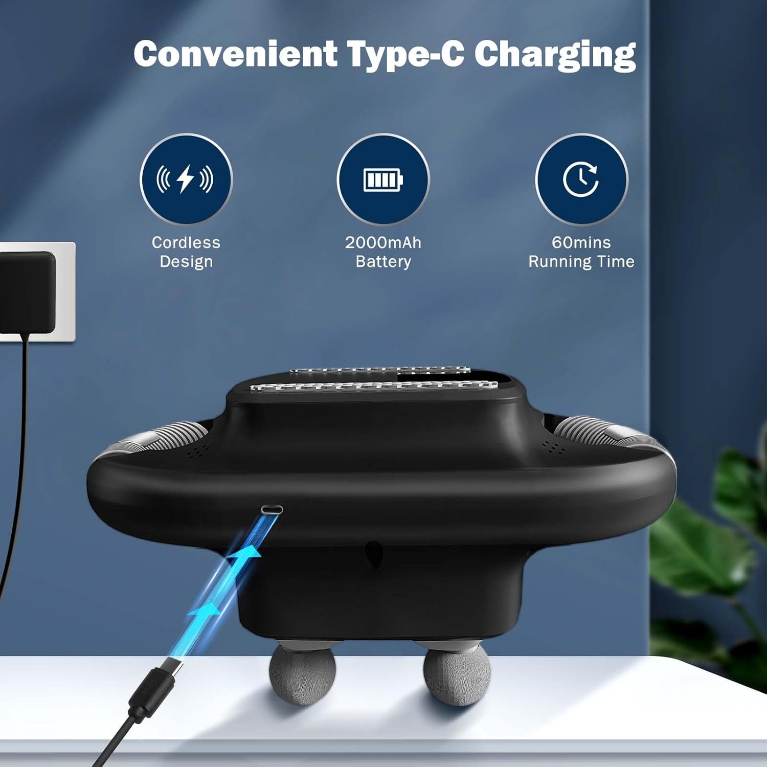 With its built-in rechargeable battery, is perfect for on-the-go relief, whether at home, at the gym, or on a trip.